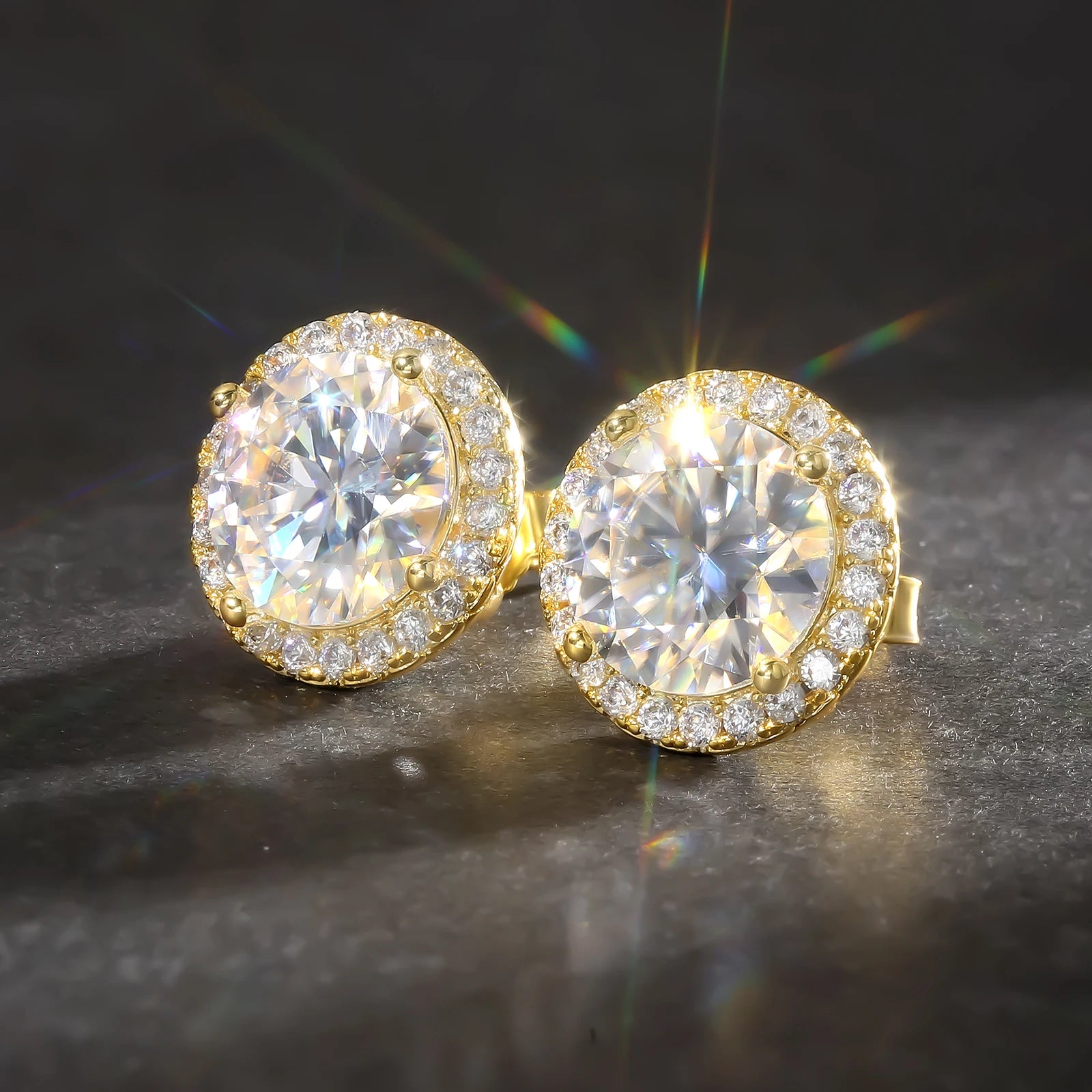 1CT Pass Diamond Test VVS Moissanite Jewelry GRA Certified Men Women Gifts 14K Gold Plated 925 Sterling Silver Halo Stud Earring