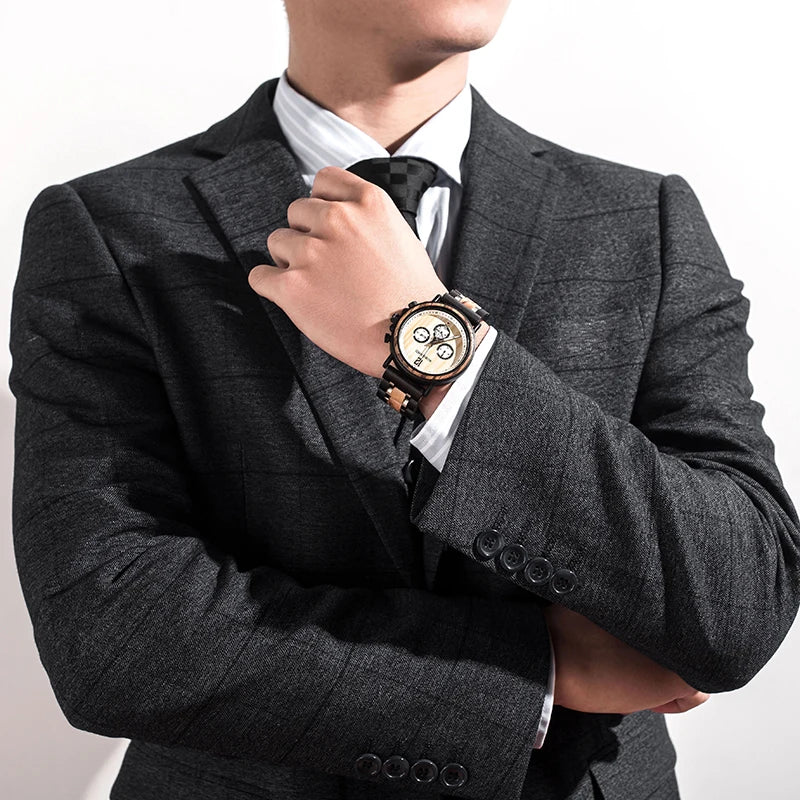 BOBO BIRD Wooden Watch Men Top Brand Luxury Stylish Chronograph Military Watches Wooden Box Logo Custom Great Gift Reloj Hombre