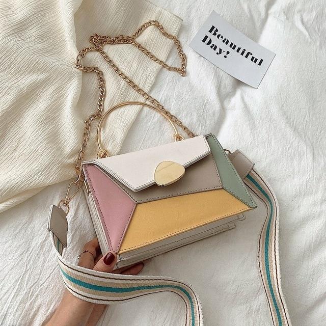 Contrast PU Leather Crossbody Shoulder Messenger Bag