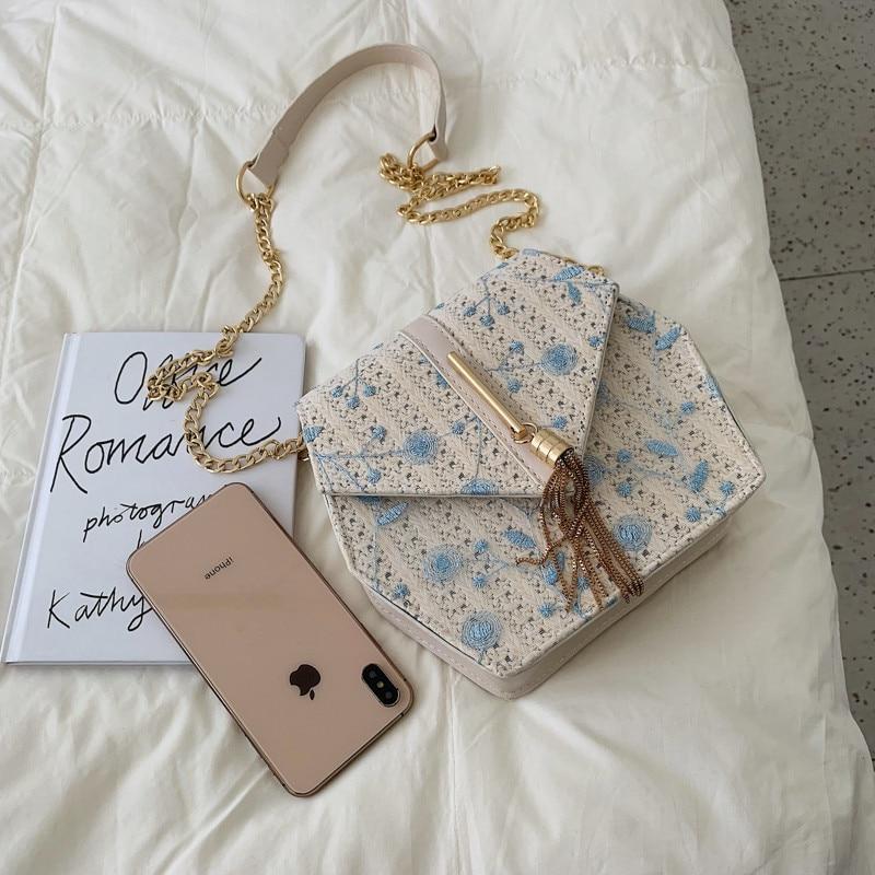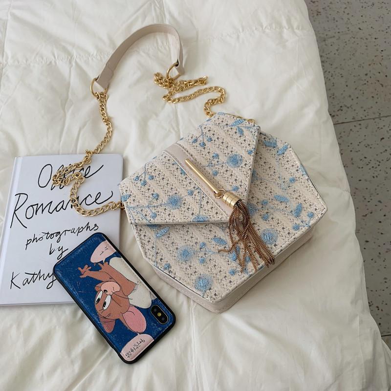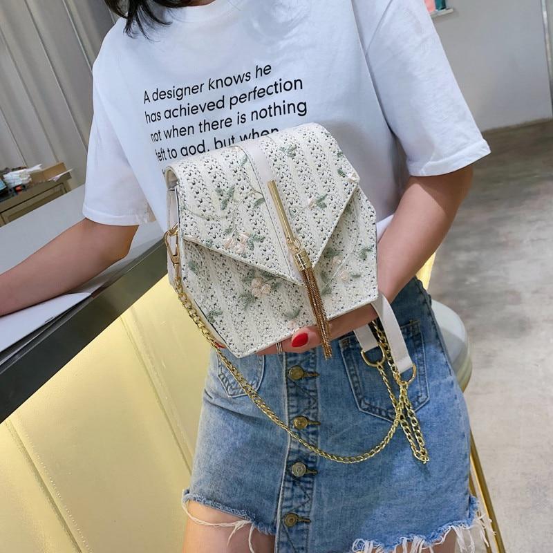 Hexagon Style Straw Lace embroidery Bag Handbags Women Summer Rattan Bag