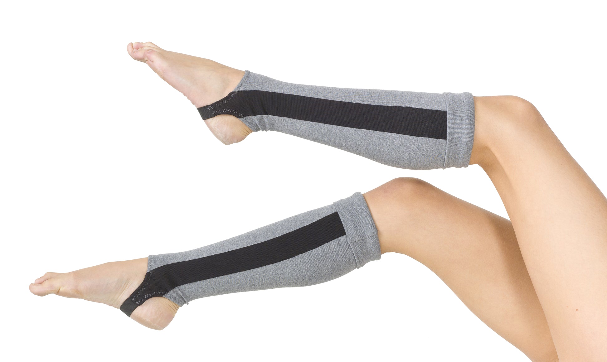 Short grey bootlegs (below knee) with stripe on the sides
