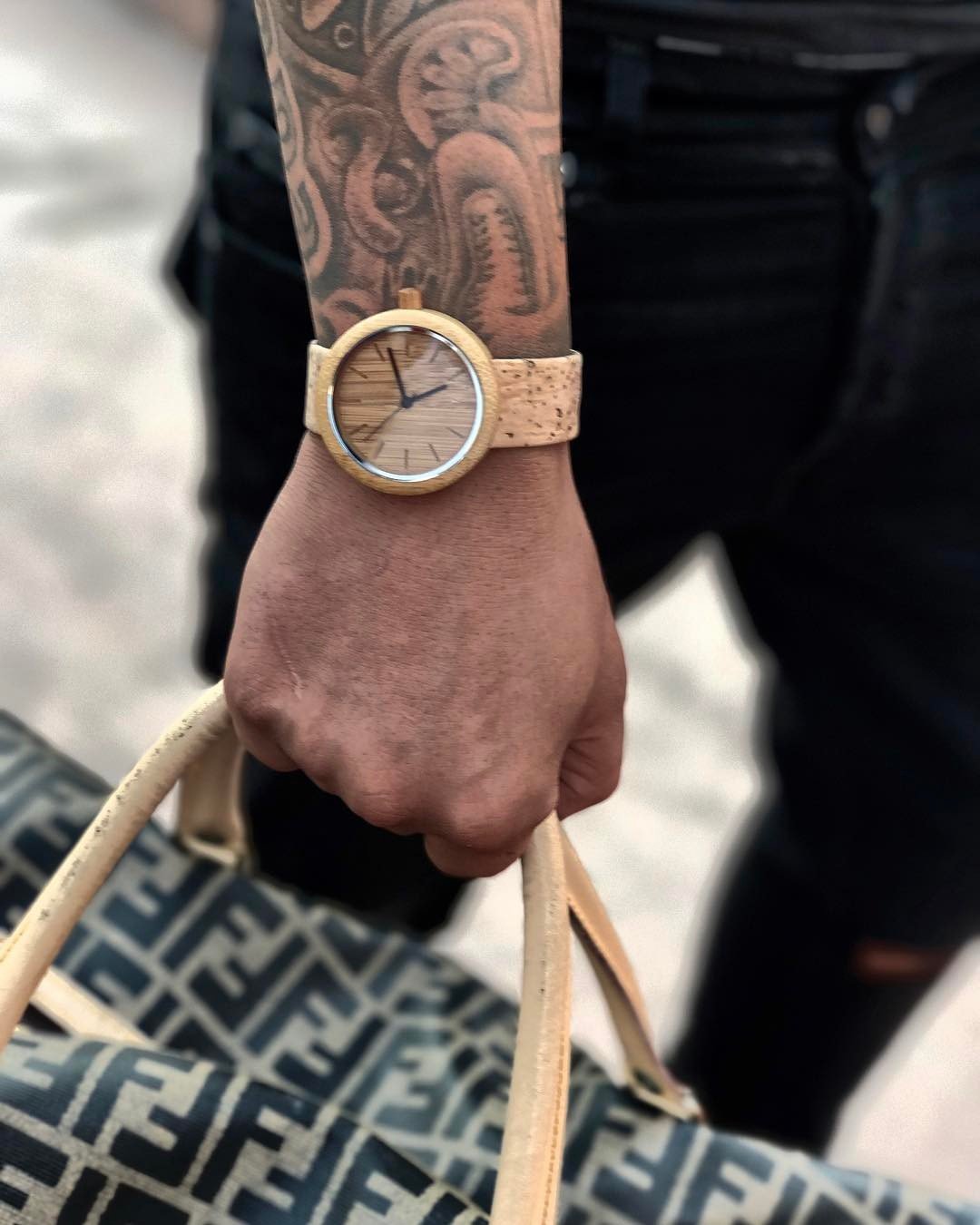 The Panda Watch features a premium minimalist design fused with sustainable elements. Every watch is handcrafted by blending natural materials like Bamboo and Portuguese cork with a Swiss Movement internal mechanism, creating a timepiece of exceptional quality and design.