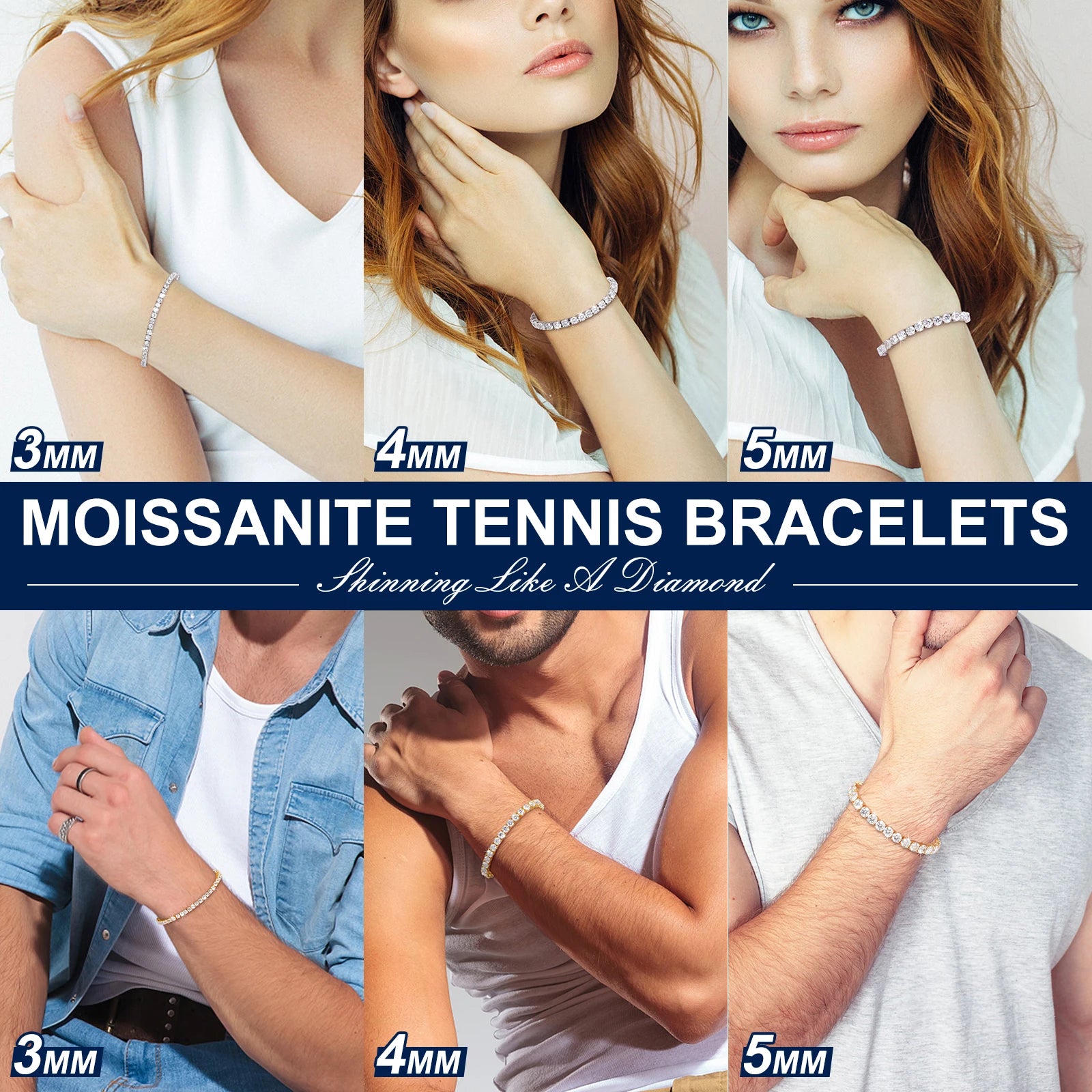 Women Jewelry VVS Moissanite Diamond Clustered Tennis Bracelet White Gold Plated 925 Sterling Silver Tennis Chain Bracelet